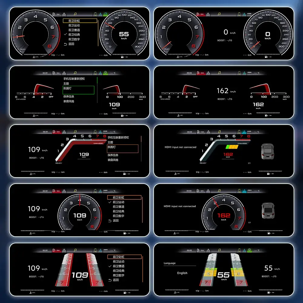 Define your own cockpit. This Audi A4 digital cluster offers 9+ stunning UI themes, from the classic Audi OEM look to futuristic sporty designs, ensuring your dashboard matches your driving mood.