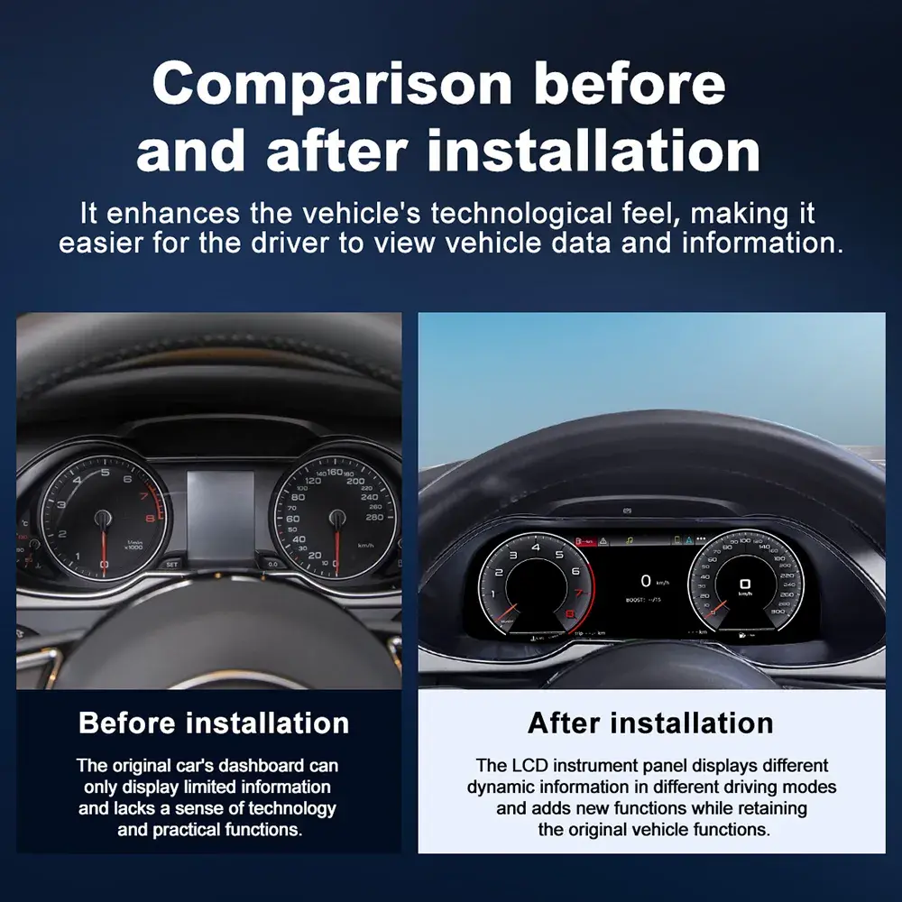 Protect your vehicle. The Audi A4 digital cluster is designed for a perfect fit with factory connectors. No wire cutting, no coding, and no complex modifications are required—just pure, effortless installation.