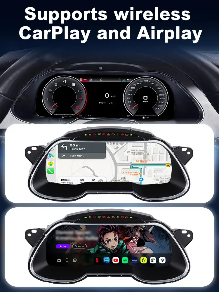 Joyeauto 12.3″ Linux LCD Instrument Cluster for Audi A4 (2013-2016) | Wireless CarPlay & AirPlay | Digital Dashboard Cockpit Retrofit