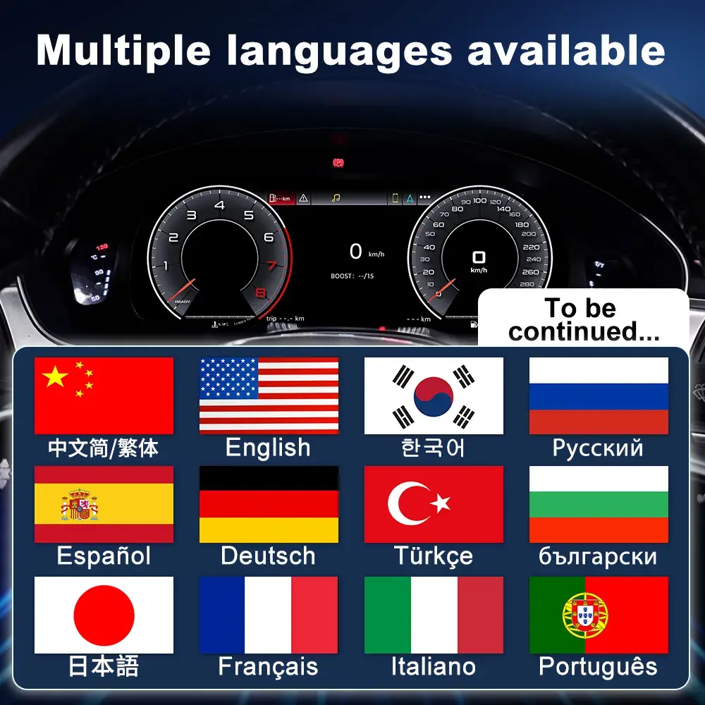 Our system is built for the global Audi community. The Audi A6 digital cluster supports multiple languages and regional settings, ensuring a seamless user experience worldwide.