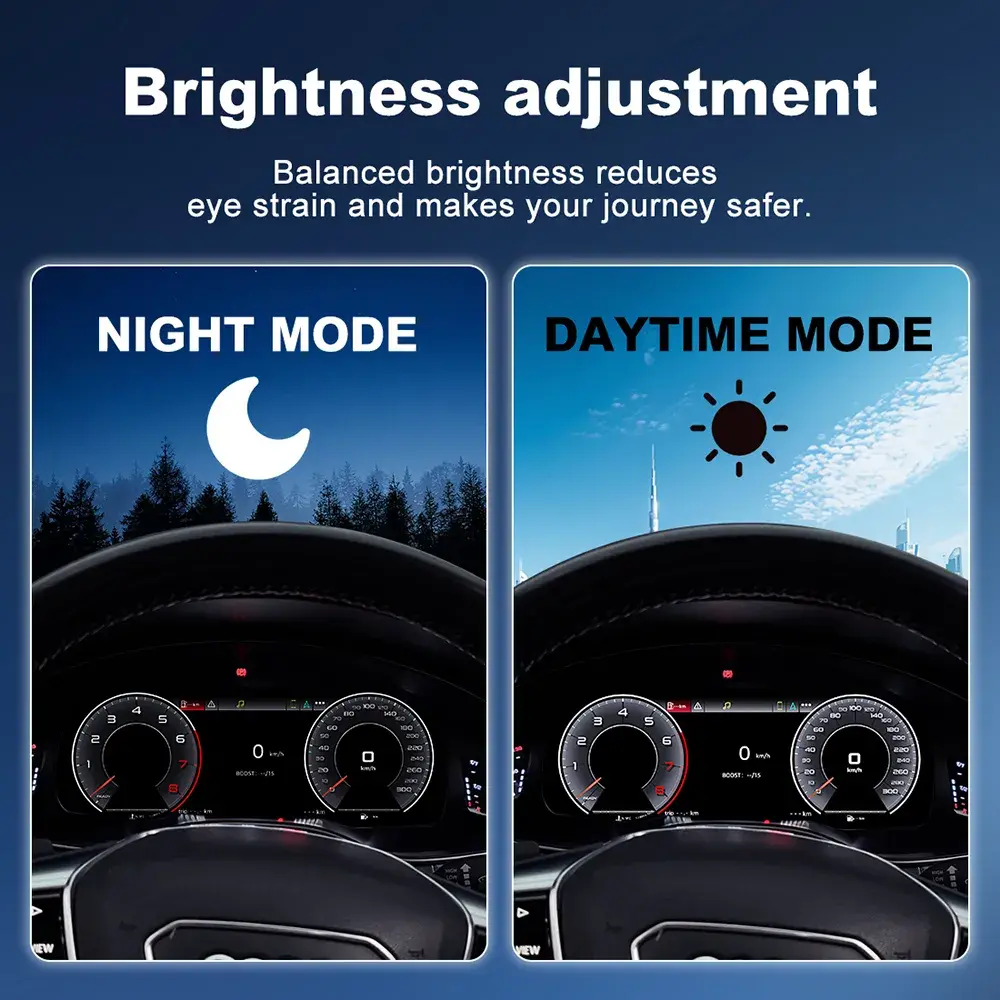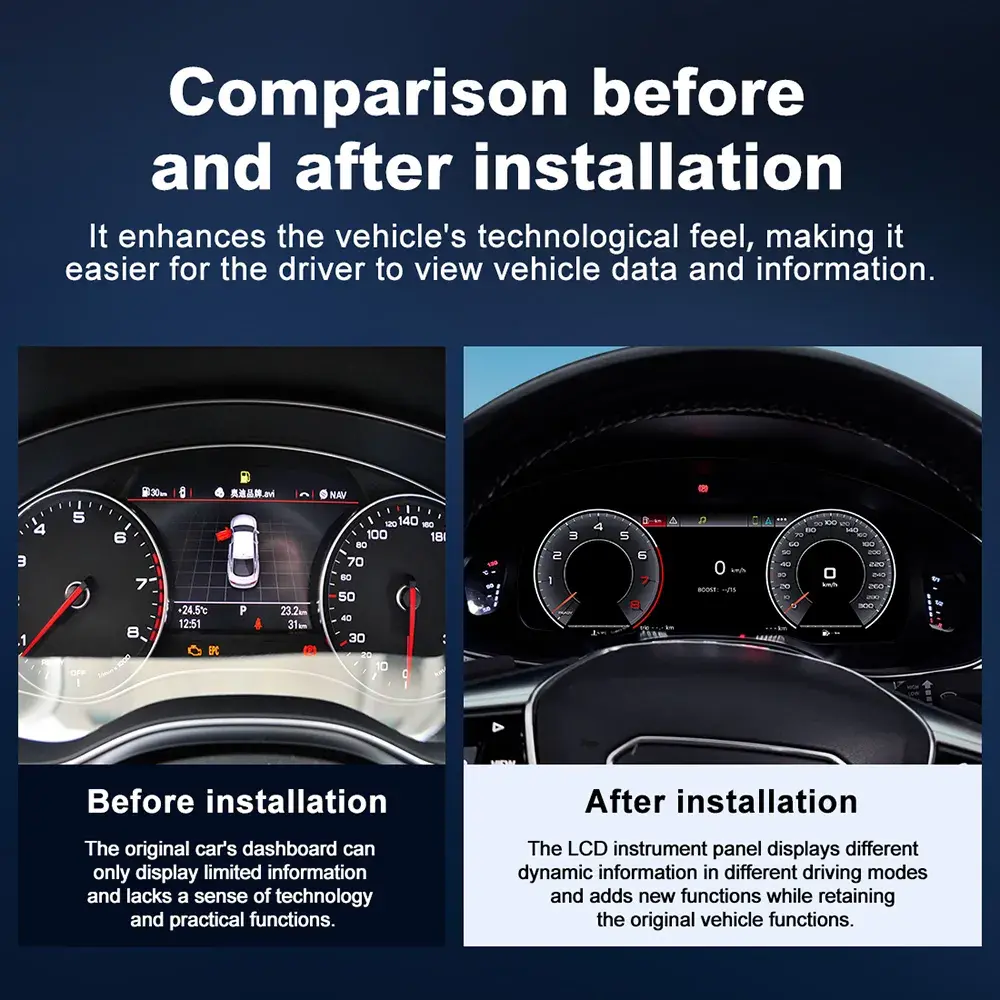 The Audi A6 digital cluster is engineered for a perfect OEM-style fit. Simply plug and play with original connectors—no wire cutting, no coding, and no dash modifications required.