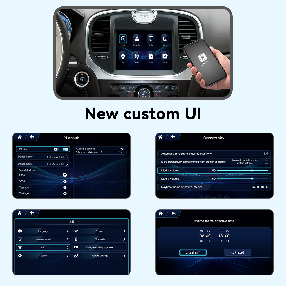 3, Support Wireless iOS and Android Mirror, USB flash play.