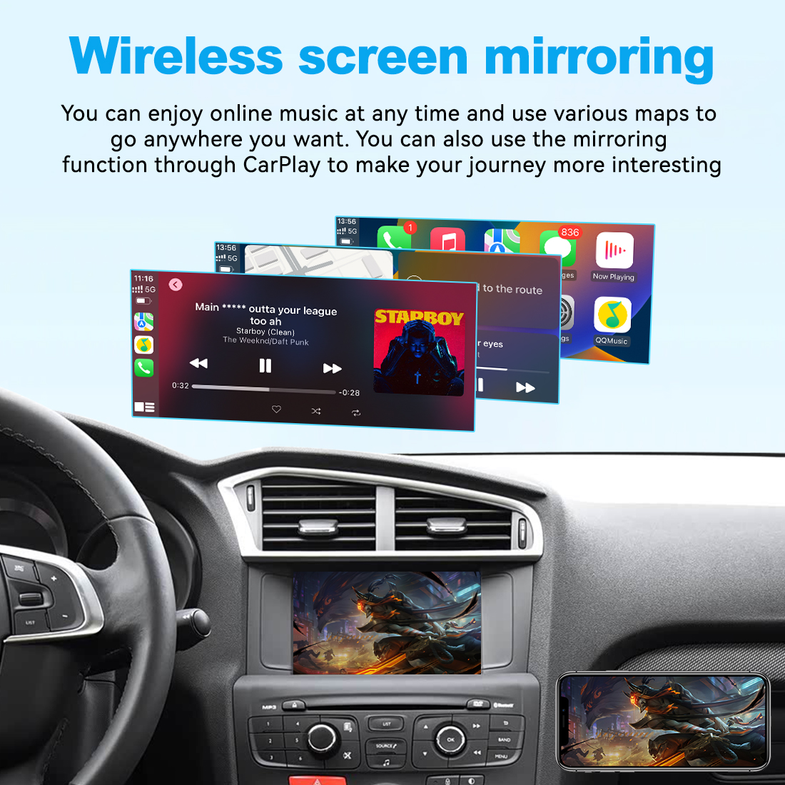 - Works for both wireless and wired Apple CarPlay(wired keep your phone charged at the same time)