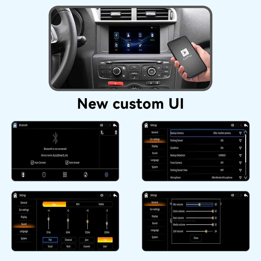 4, Audio channels Support OEM bluetooth and Aux, can use original Microphone.