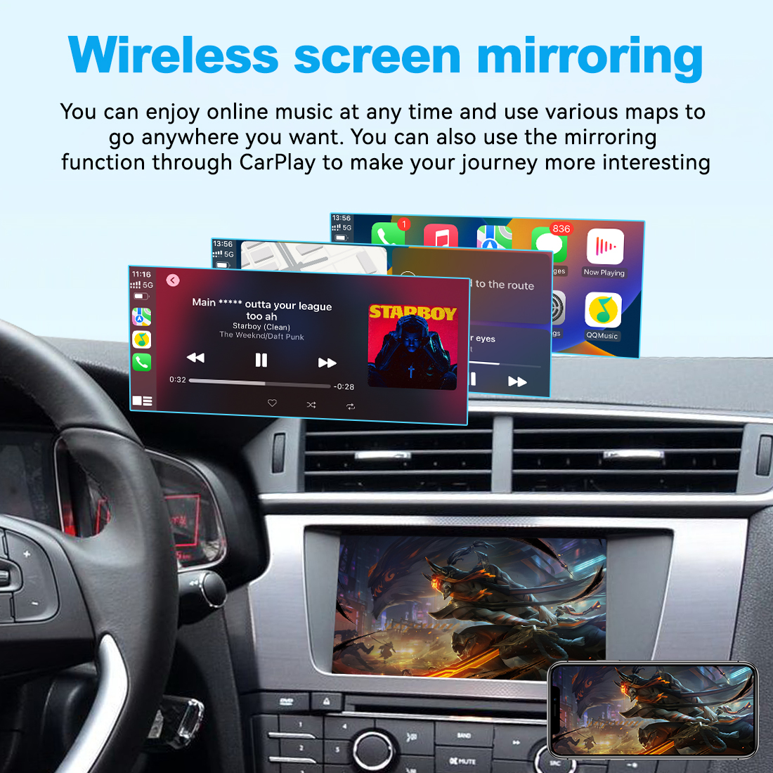 - Works for both wireless and wired Apple CarPlay(wired keep your phone charged at the same time)