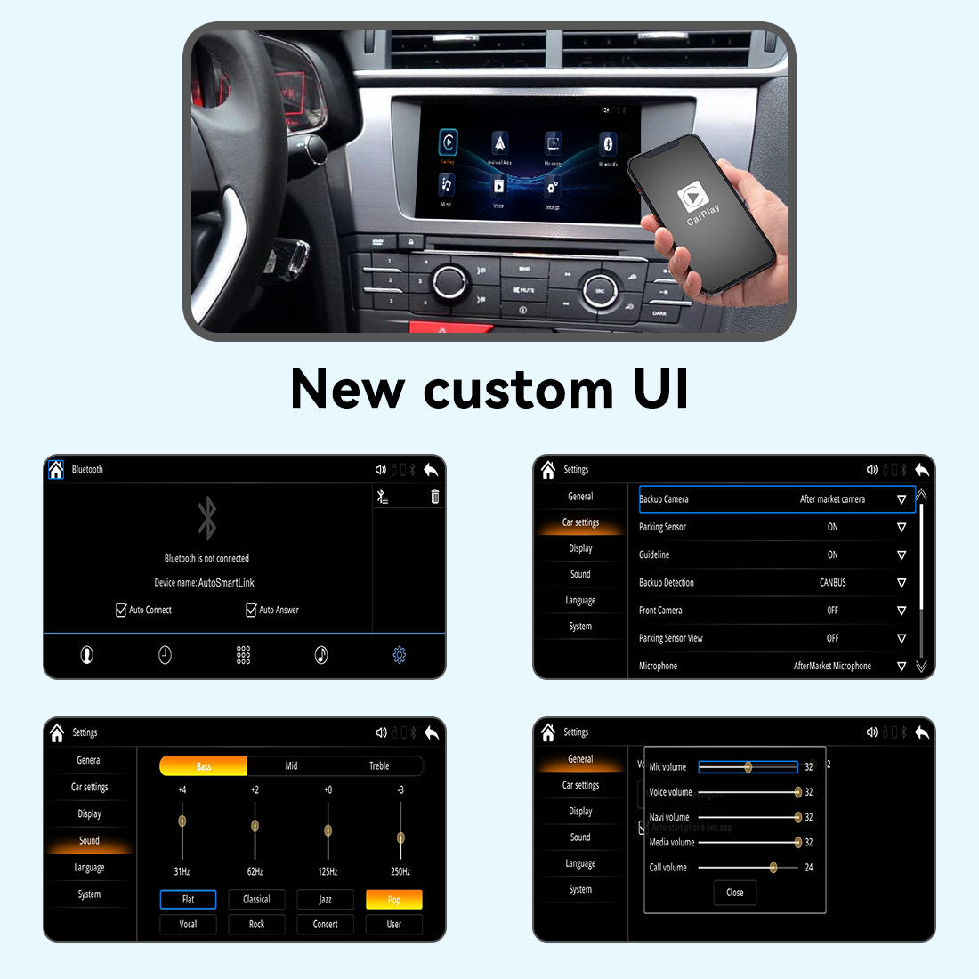 4, Audio channels Support OEM bluetooth and Aux, can use original Microphone.