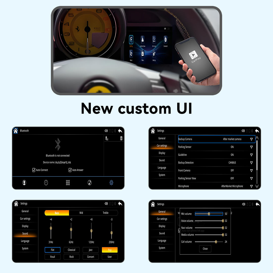4, Audio channels Support OEM bluetooth and Aux, can use original Microphone.