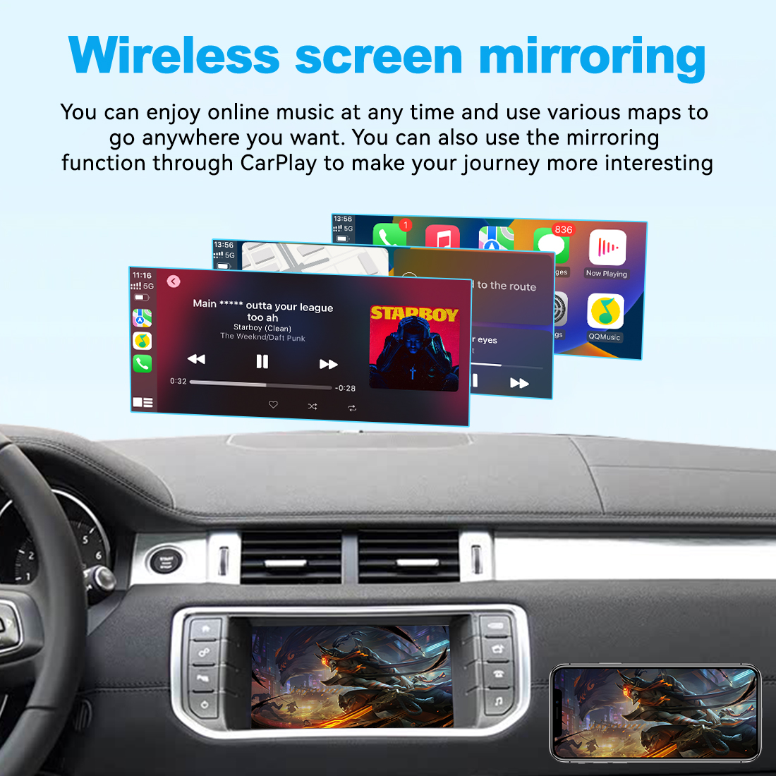 - Works for both wireless and wired Apple CarPlay(wired keep your phone charged at the same time)