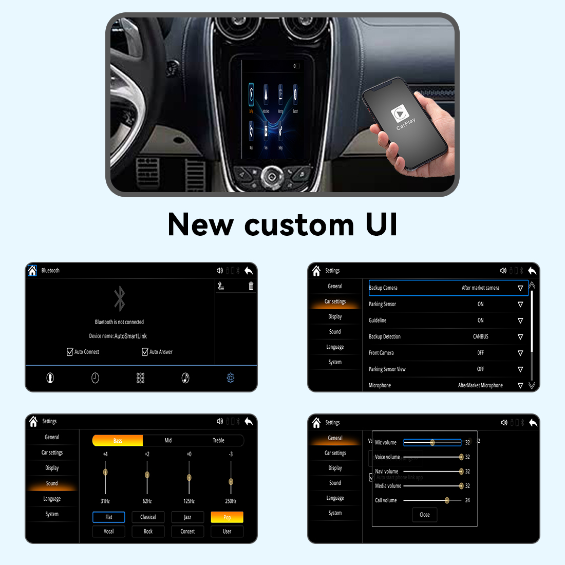 4, Audio channels Support OEM bluetooth and Aux, can use original Microphone.