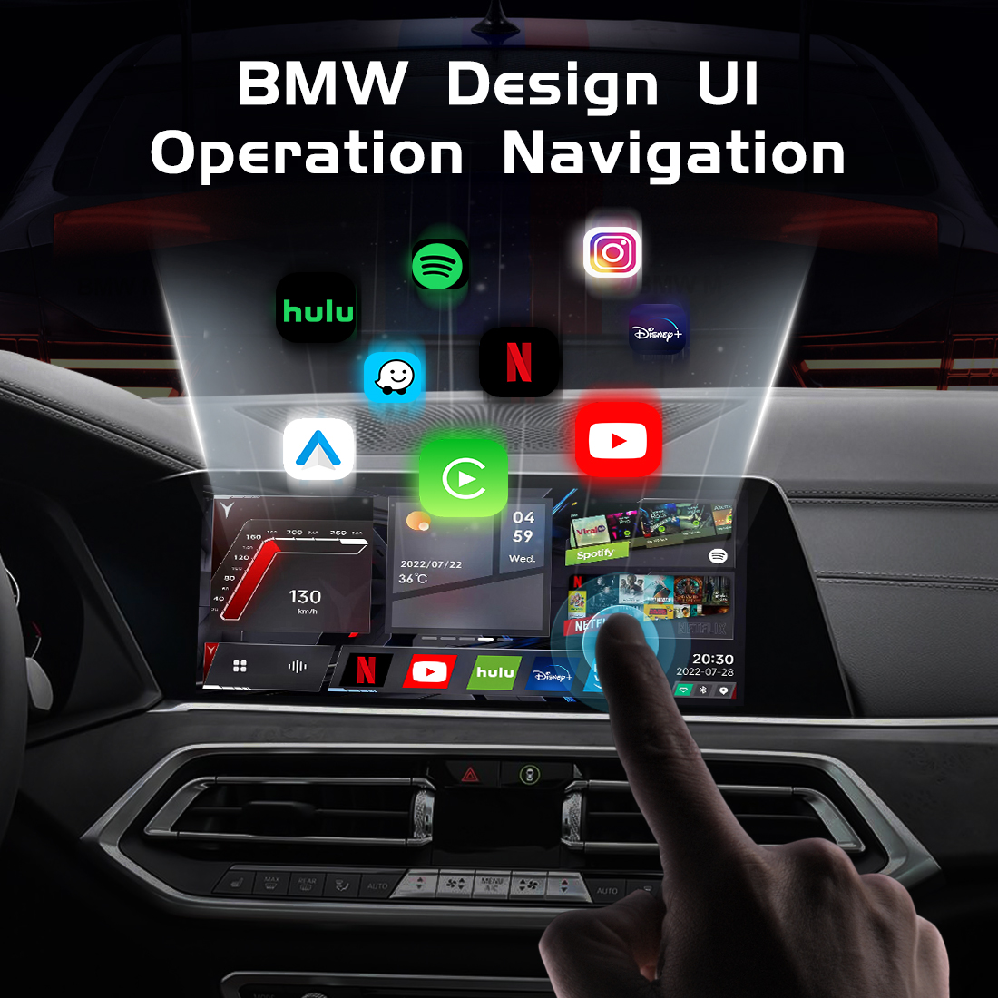 - Google Play Store,Apple CarPlay/Youtube/Netflix