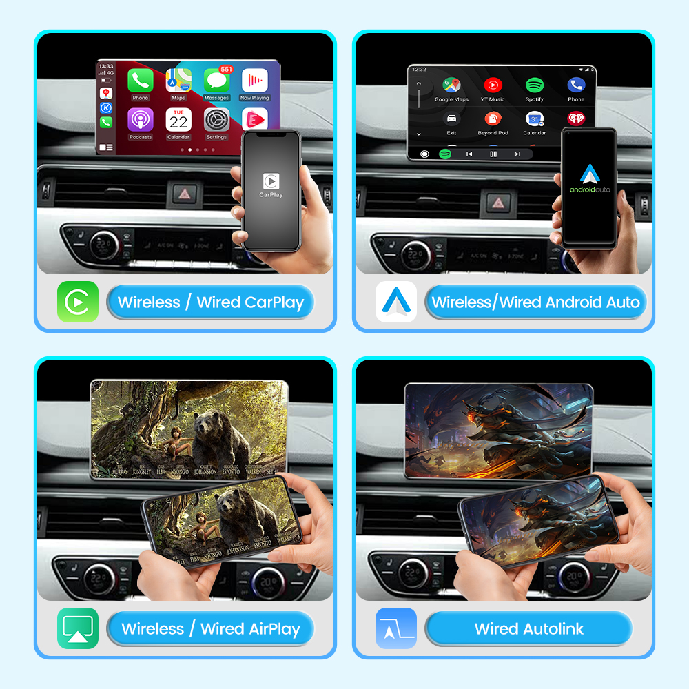• Works with Apple CarPlay wireless connection(Keep your phone charged at the same time)